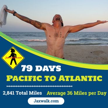 Drinking, smoking and unhealthy eating, it was a part of my life for a long time. That lifestyle had me overweight, feeling unhappy, depressed and wanting something better. I remember looking over at my young son and I knew I had to make a change. I was going to be the best possible example for my son I could be. So change I did. I quit anything and everything that wasn't a positive in my life. I became a vegan over night, started working out and walking. Within 90 days of clean eating and good health habits I lost 50lbs and was walking near 20 miles a day. I was seeing an amazing transformation in myself and now I was ready to chase a life long dream. A walk across America... And not just some leisurely stroll but a quest to walk from the Pacific Ocean to the Atlantic Ocean in 100 days or less. I took my momentum and turned my training all the way up... By April of 2019 a month before I set out on my coast to coast journey I was walking 40 miles a day with a 40lbs vest. I was told I was crazy, it was not possible, that I'd die in the desert. I didn't care what they said... I set out from Newport Beach, CA March 1st and I walked. I faced many obstacles along the way. Many I didn't expect but I kept going. I was faced with death almost daily. Scorching heat, thunderstorms, rattle snakes, coyotes, a bull, dehydration, starvation, CARS, and even a man armed with an AR-15. I kept going and 5.3 million steps later I had the greatest feeling ever jumping in the Atlantic Ocean with my son who was waiting there for me. I'll never forget when he finally saw me and started running towards me on the beach. I gave him the biggest hug with tears and a smile and we jumped in the Ocean together. Not only did I make it the 2,841 miles but I crushed my original 100 day goal in 79 days. That's an average of 36 miles a day across 9 states, crossing the desert, the Rocky Mts and the Appalachian Mts.